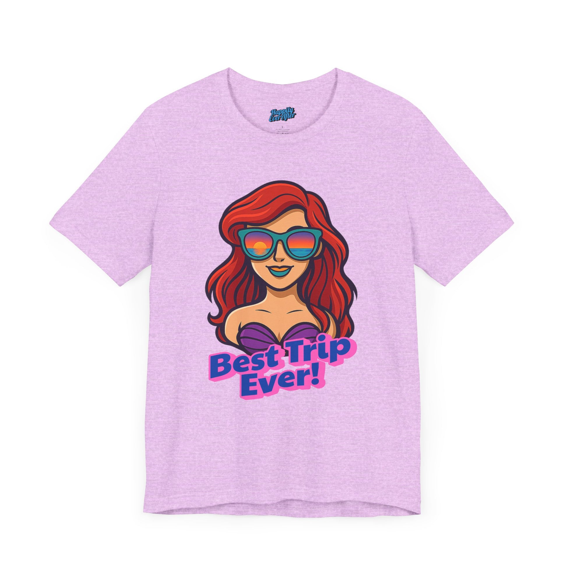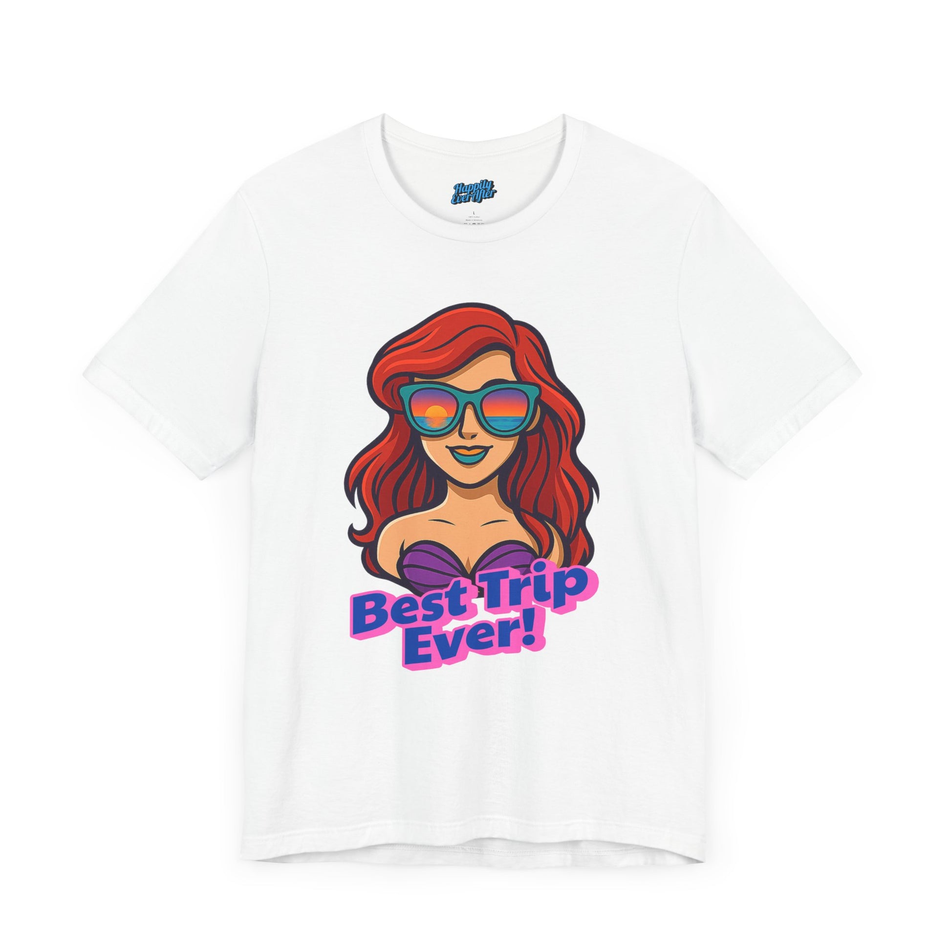 Part of our Best Trip Ever Collection, this T-Shirt features Ariel in her awesome sunglasses, perfect for your next Disney trip. It gives off a fun and vibrant vibe, ideal for Disney lovers looking to add a touch of magic to their outfits. Relevant for Disney vacations, birthdays, and everyday wear for adults.