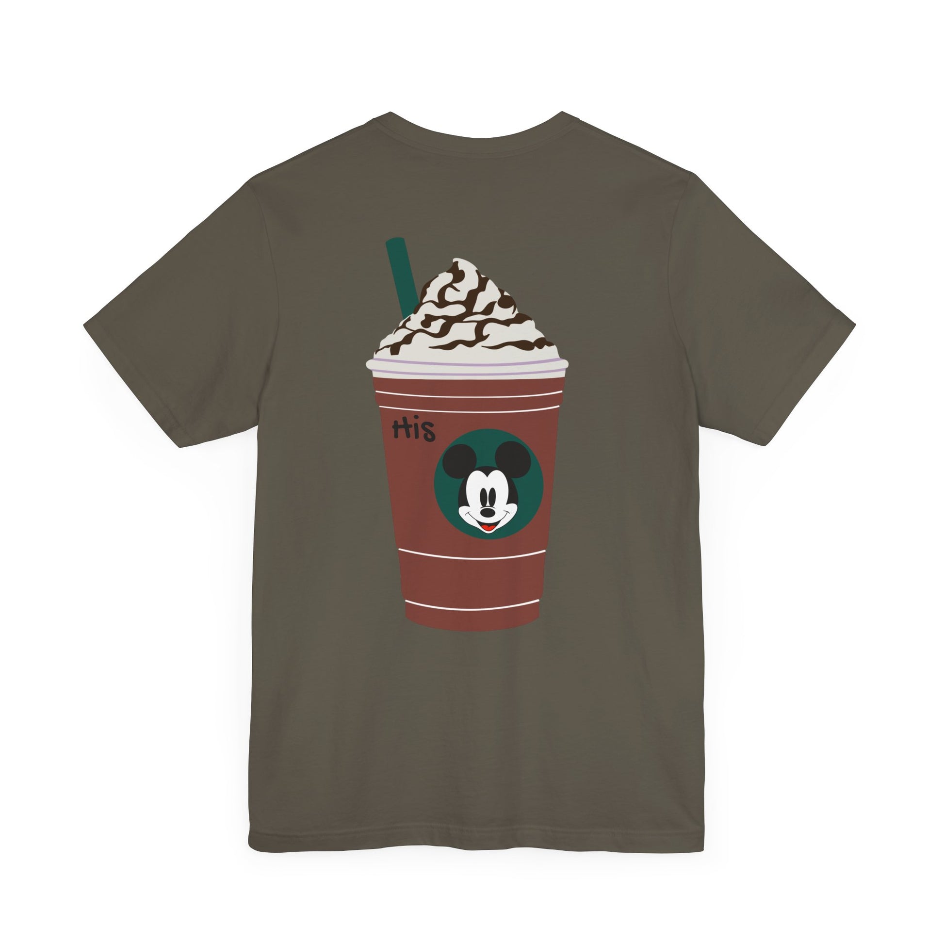 A His Starbucks feat Mickey Mouse T-Shirt that matches perfectly with our Hers version featuring Minnie Mouse. This fun and playful design is perfect for Disney fans, Starbucks fans and couples. Ideal for casual wear, theme park visits, and date nights.