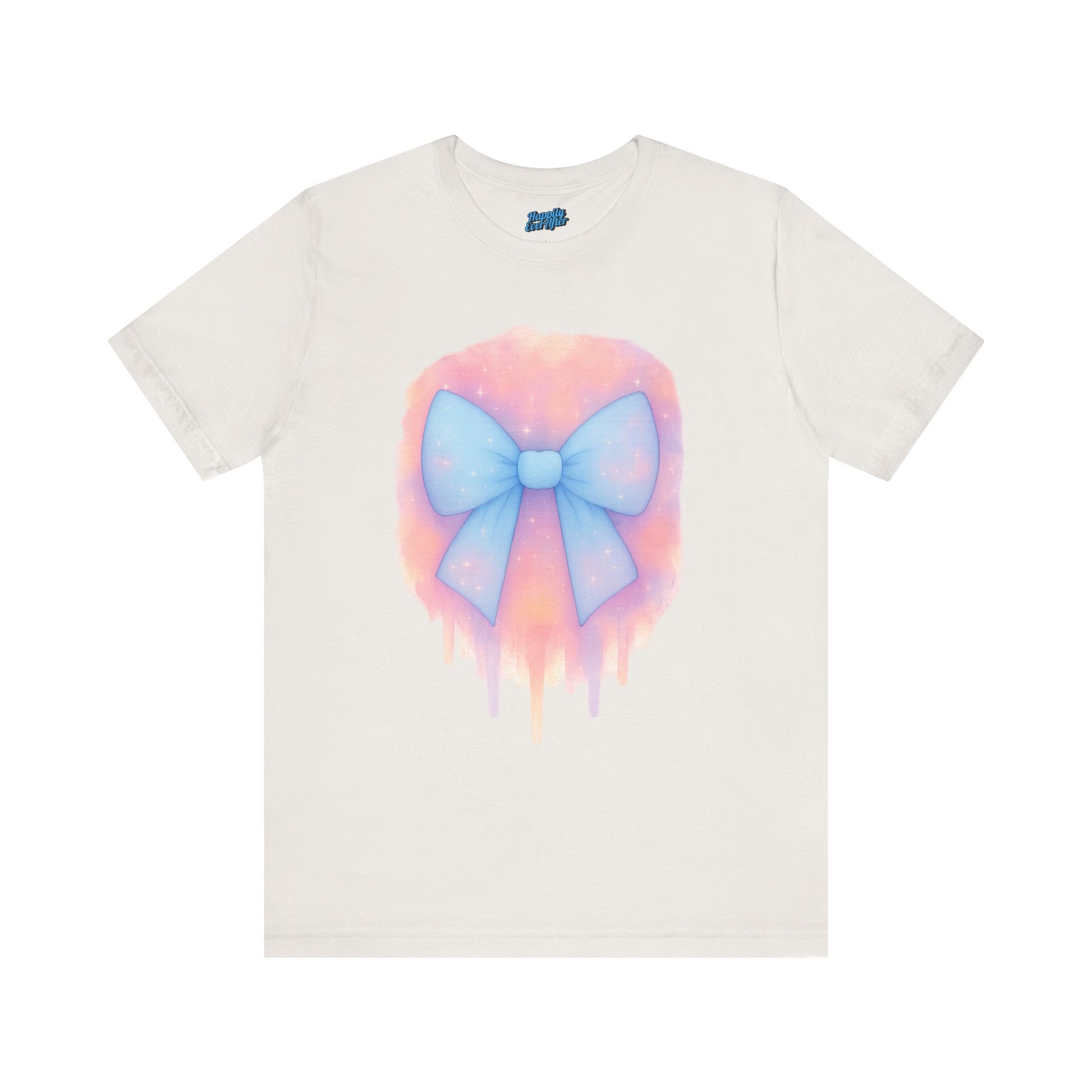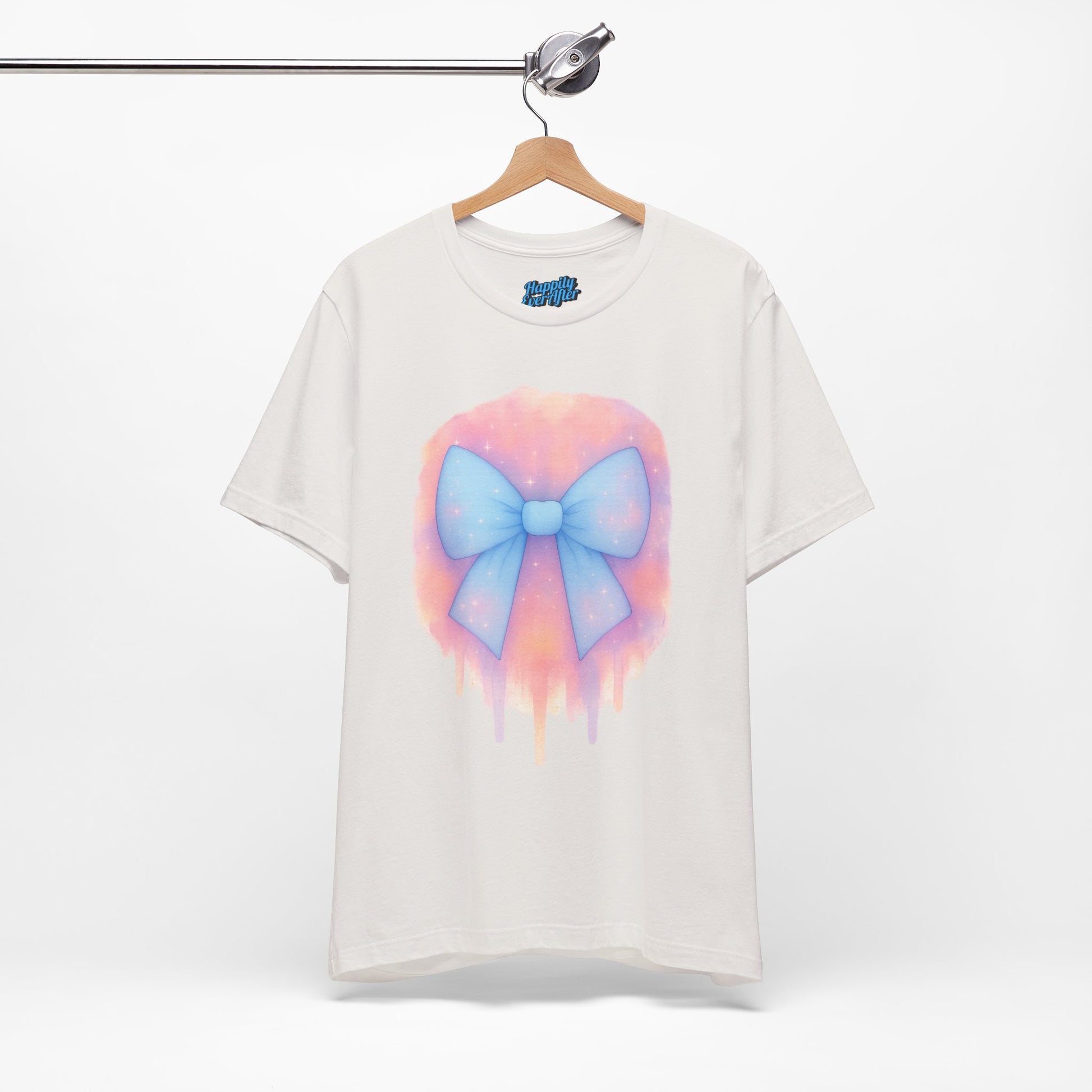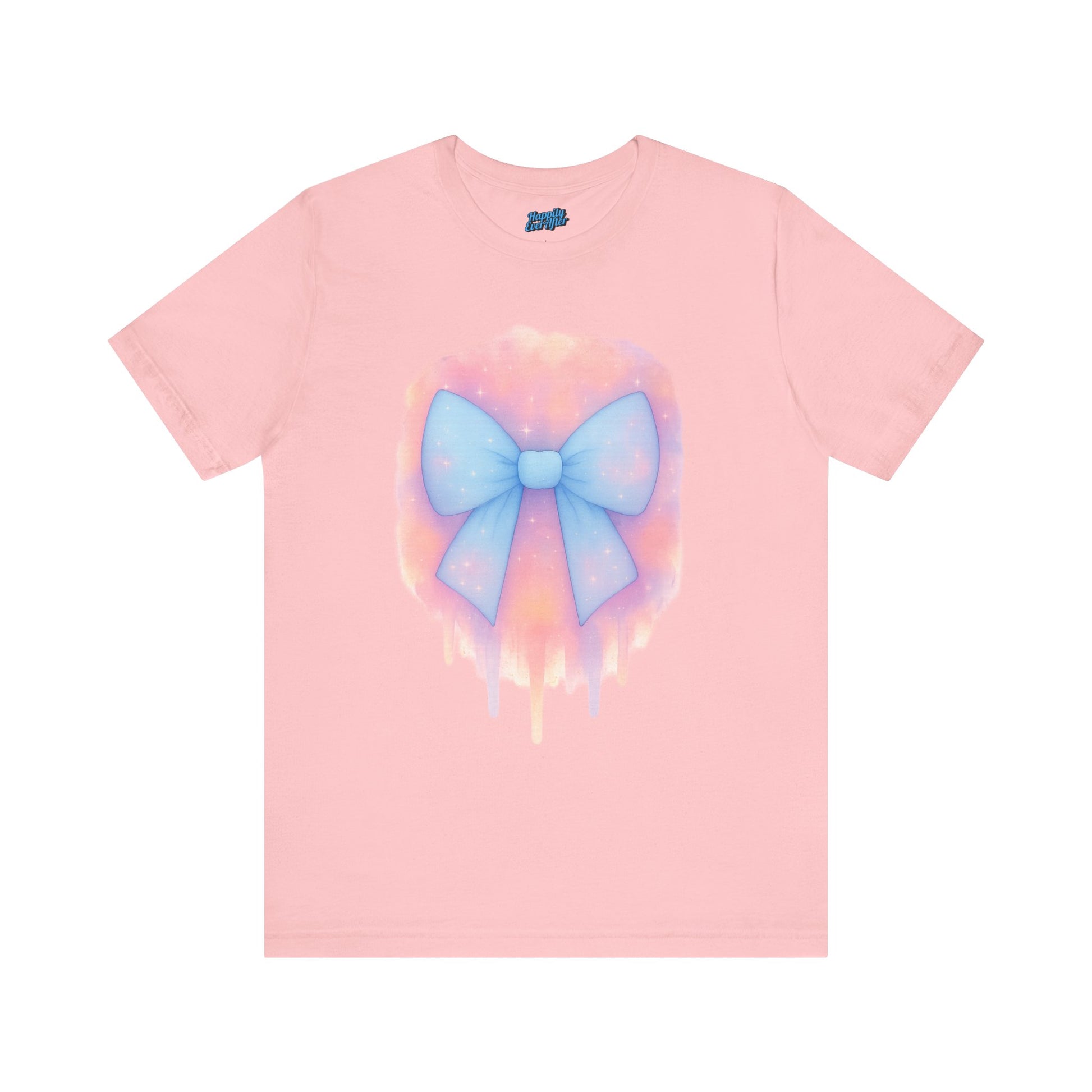 Delicate, dreamy, and full of royal charm—this tee features a soft watercolor illustration of a princess-inspired bow, capturing the magic of your favorite fairytale moments. With its pastel tones and subtle sparkle, it's perfect for park days, castle strolls, or just adding a touch of enchantment to your everyday wardrobe. Slip it on and feel instantly Bibbidi Boppidi beautiful.