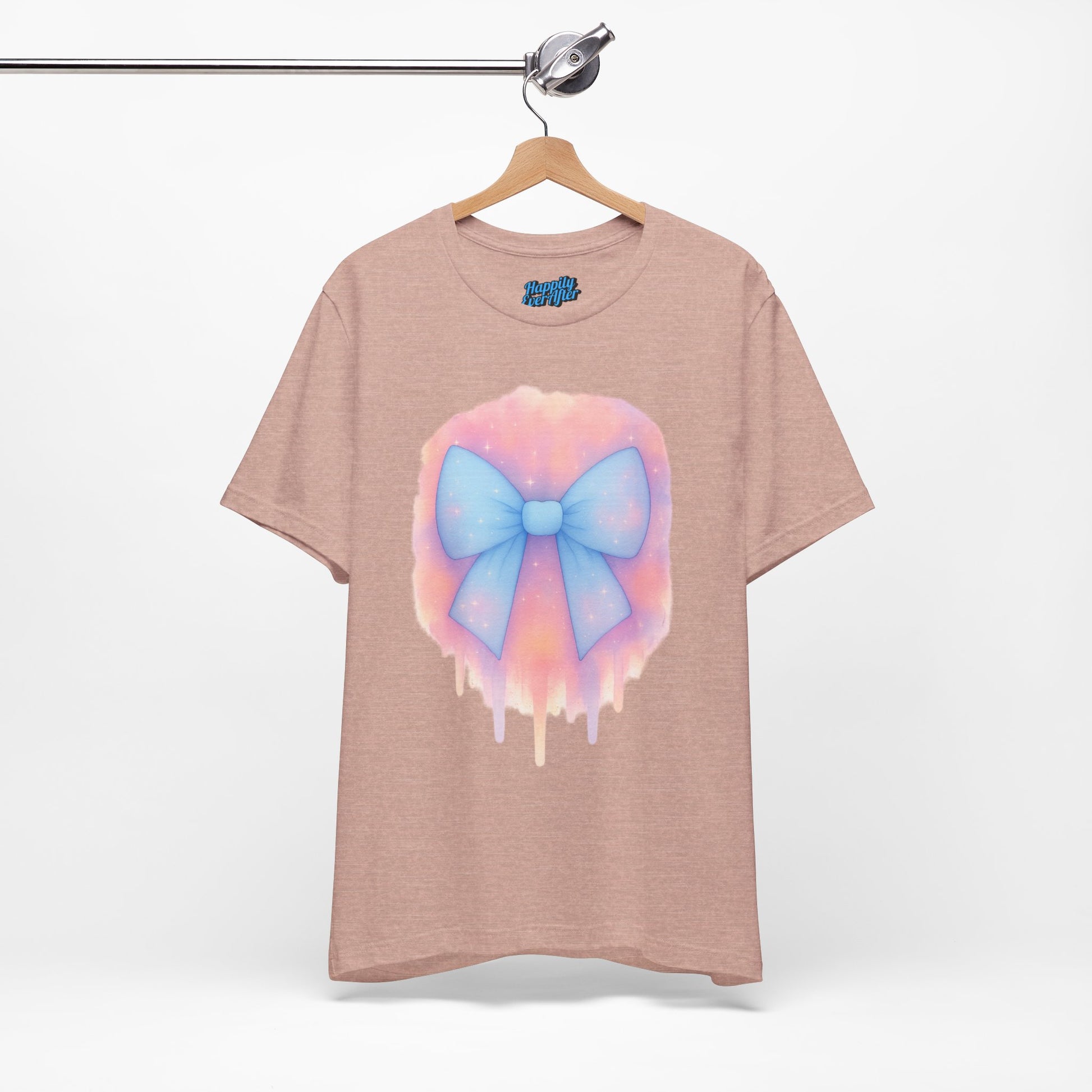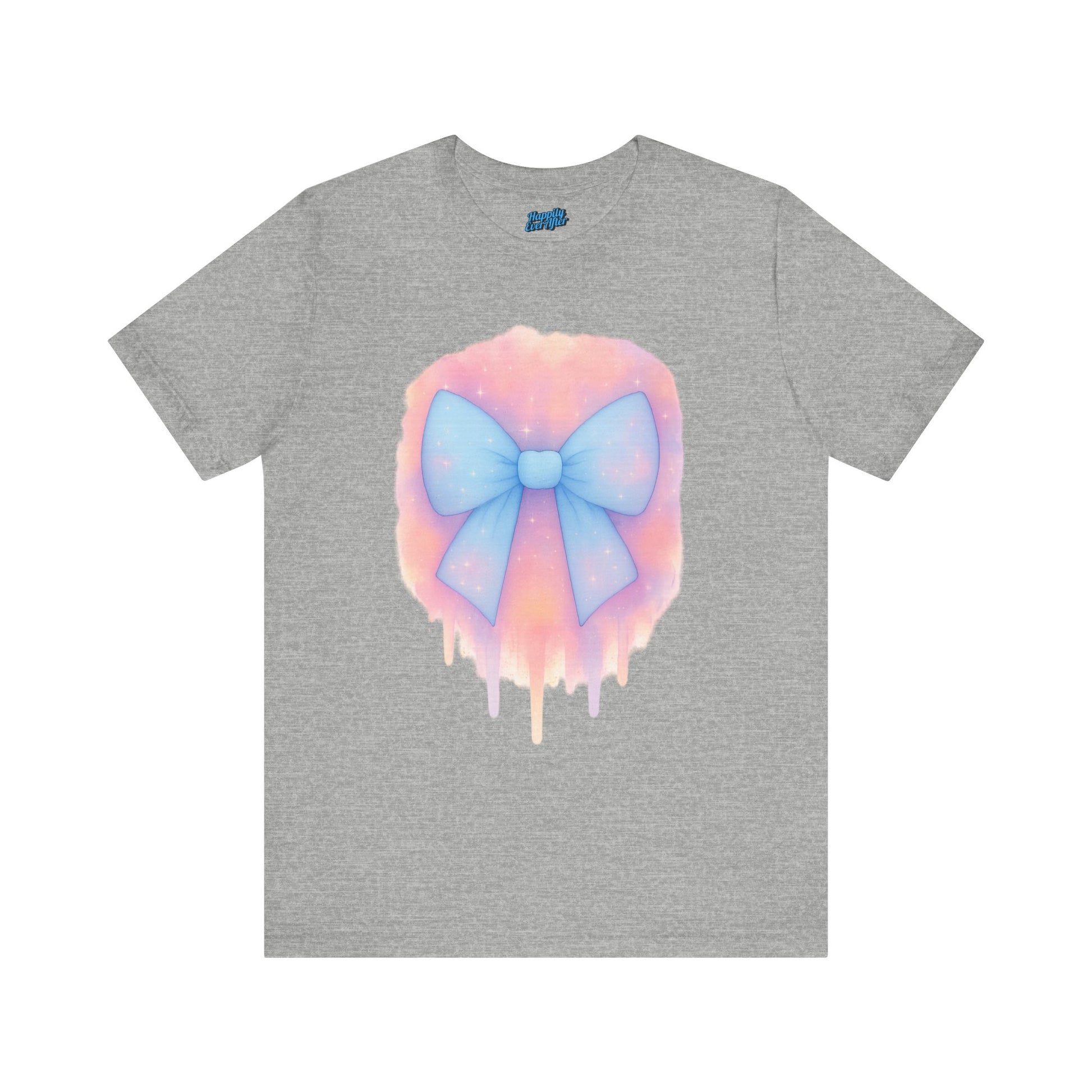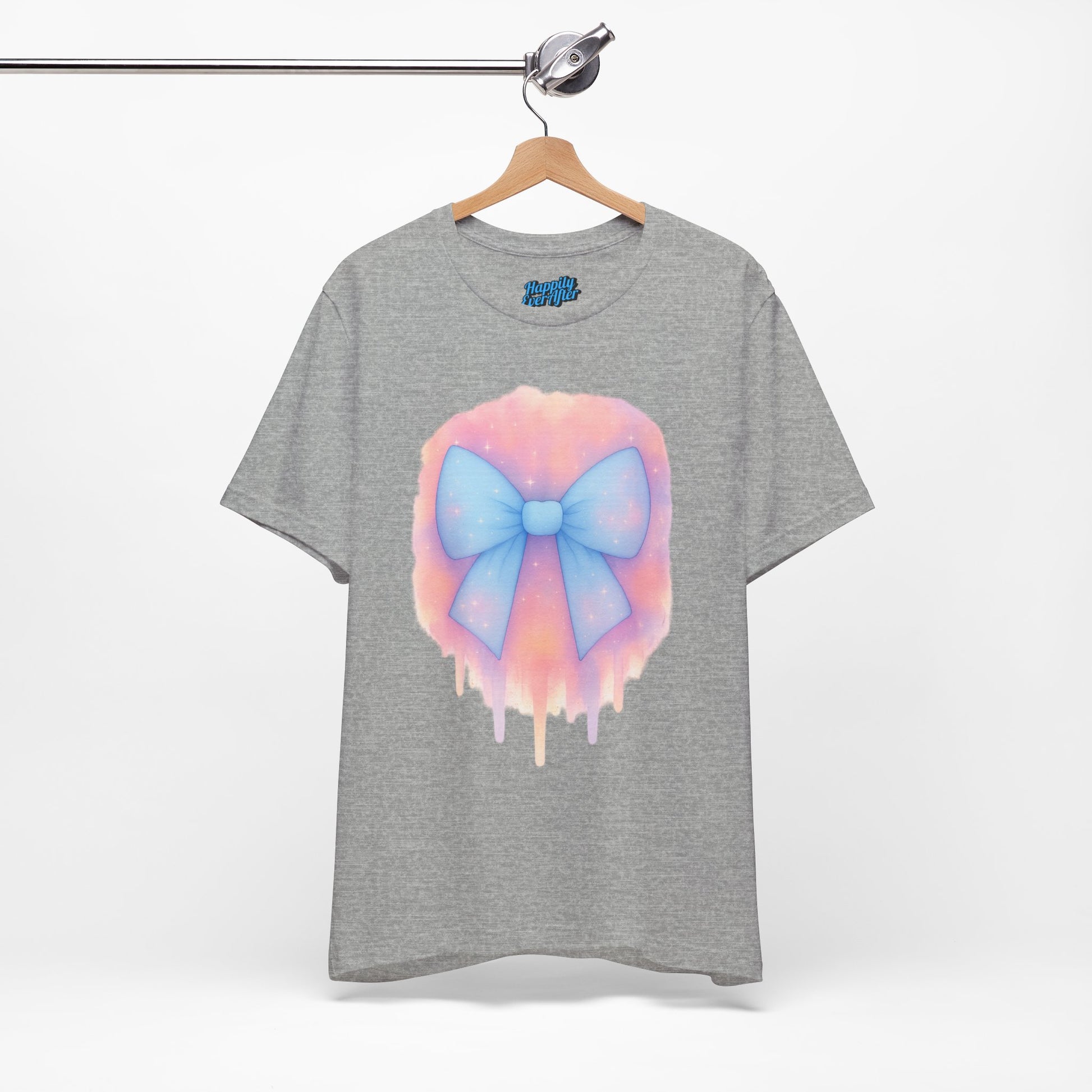 Delicate, dreamy, and full of royal charm—this tee features a soft watercolor illustration of a princess-inspired bow, capturing the magic of your favorite fairytale moments. With its pastel tones and subtle sparkle, it's perfect for park days, castle strolls, or just adding a touch of enchantment to your everyday wardrobe. Slip it on and feel instantly Bibbidi Boppidi beautiful.