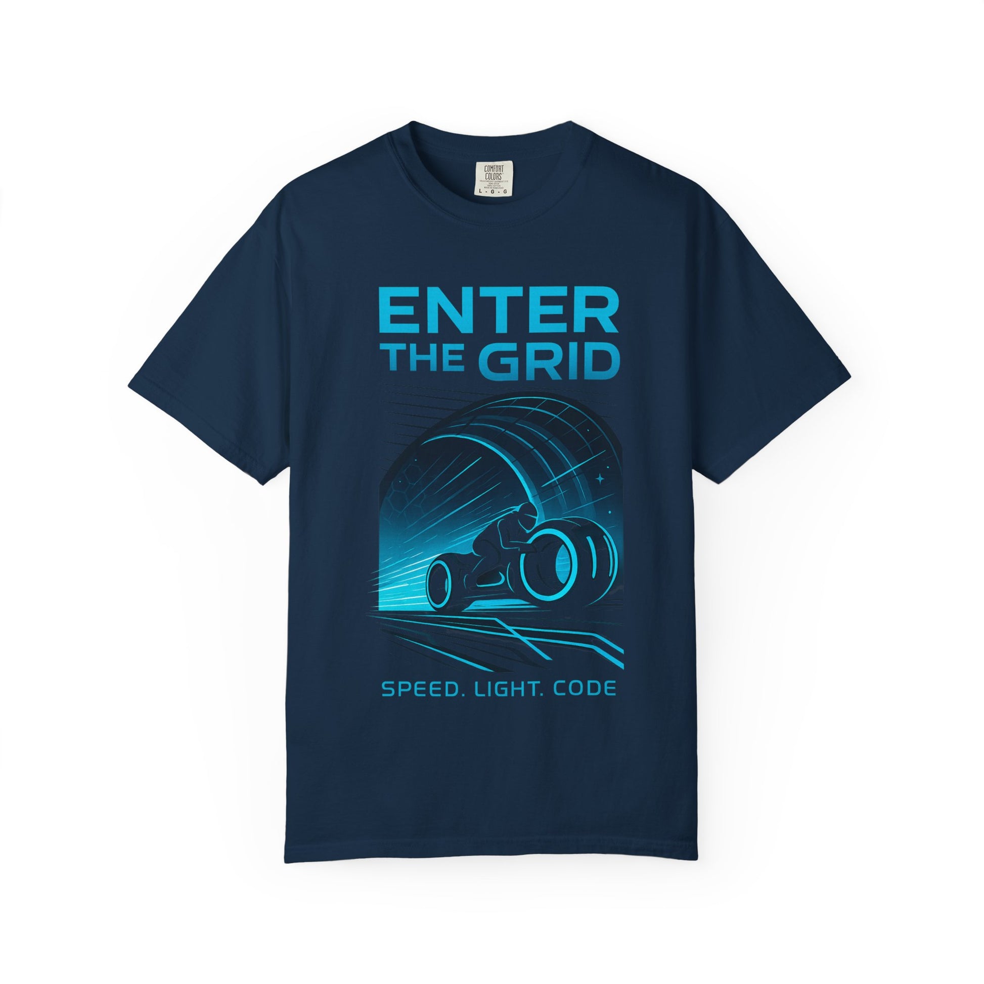 Enter the Grid. This Disney TRON-inspired tee brings the futuristic thrill of the Lightcycle run to your everyday style. Sleek, bold, and perfect for fans of high-speed adventures in the digital realm