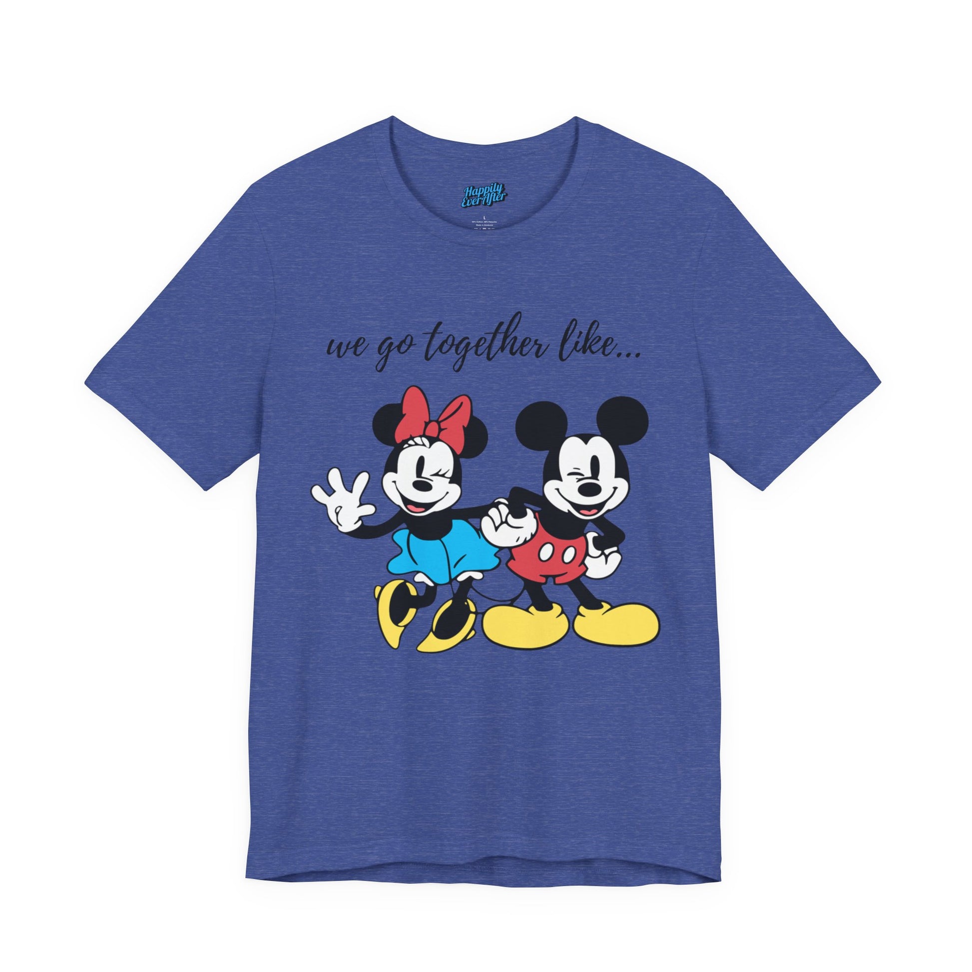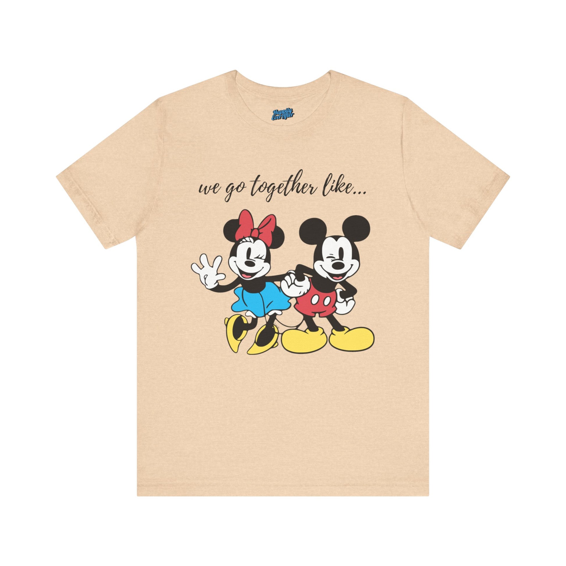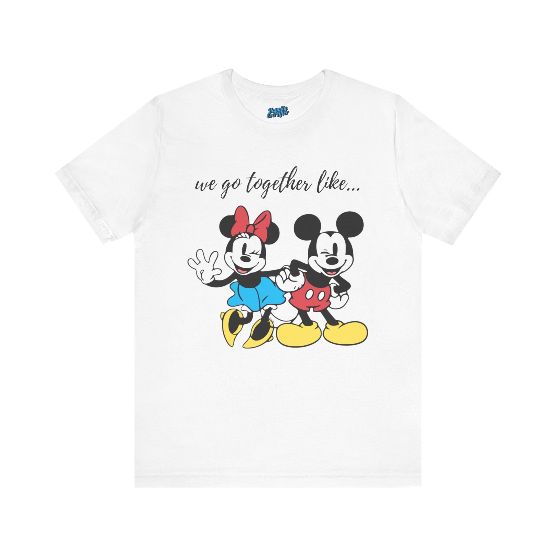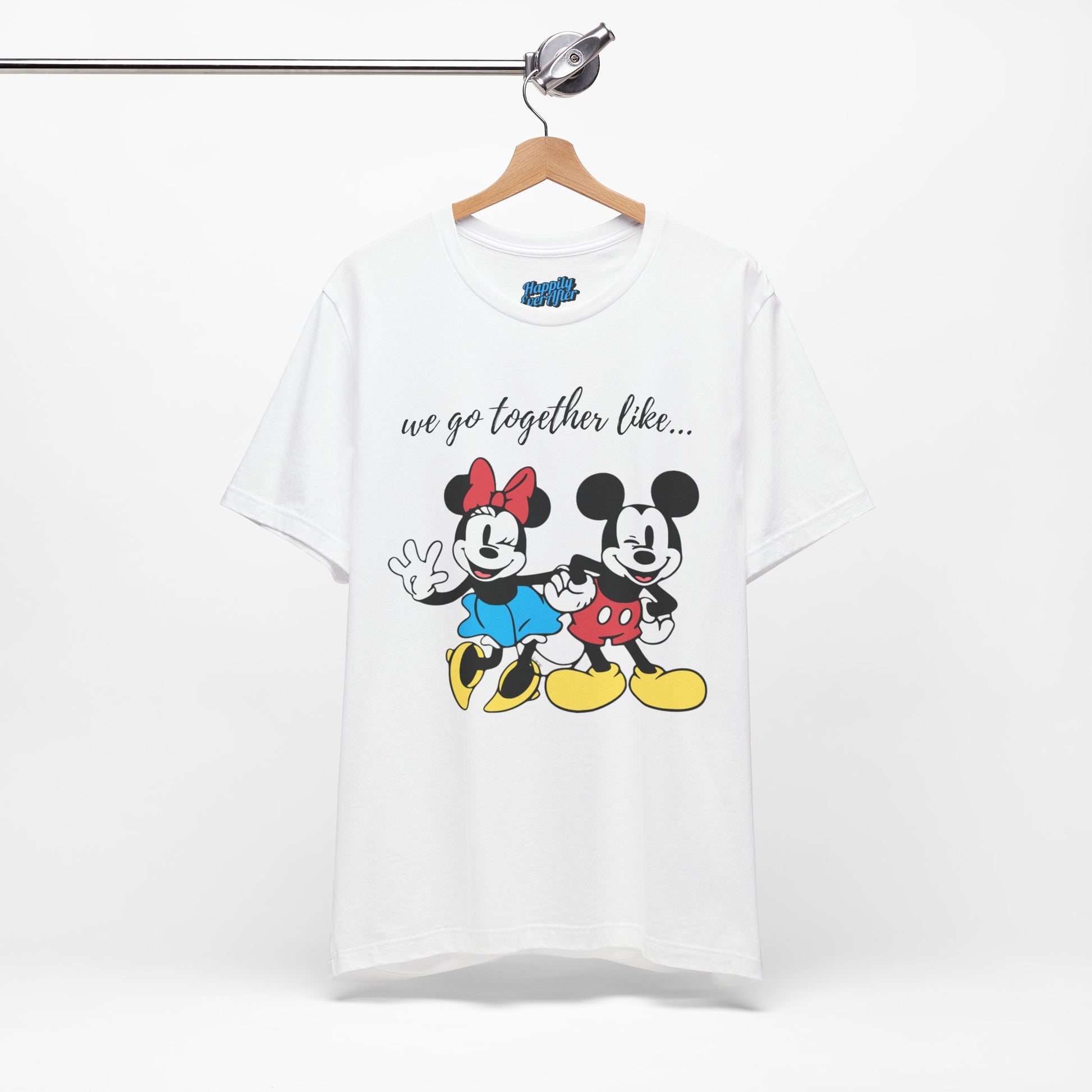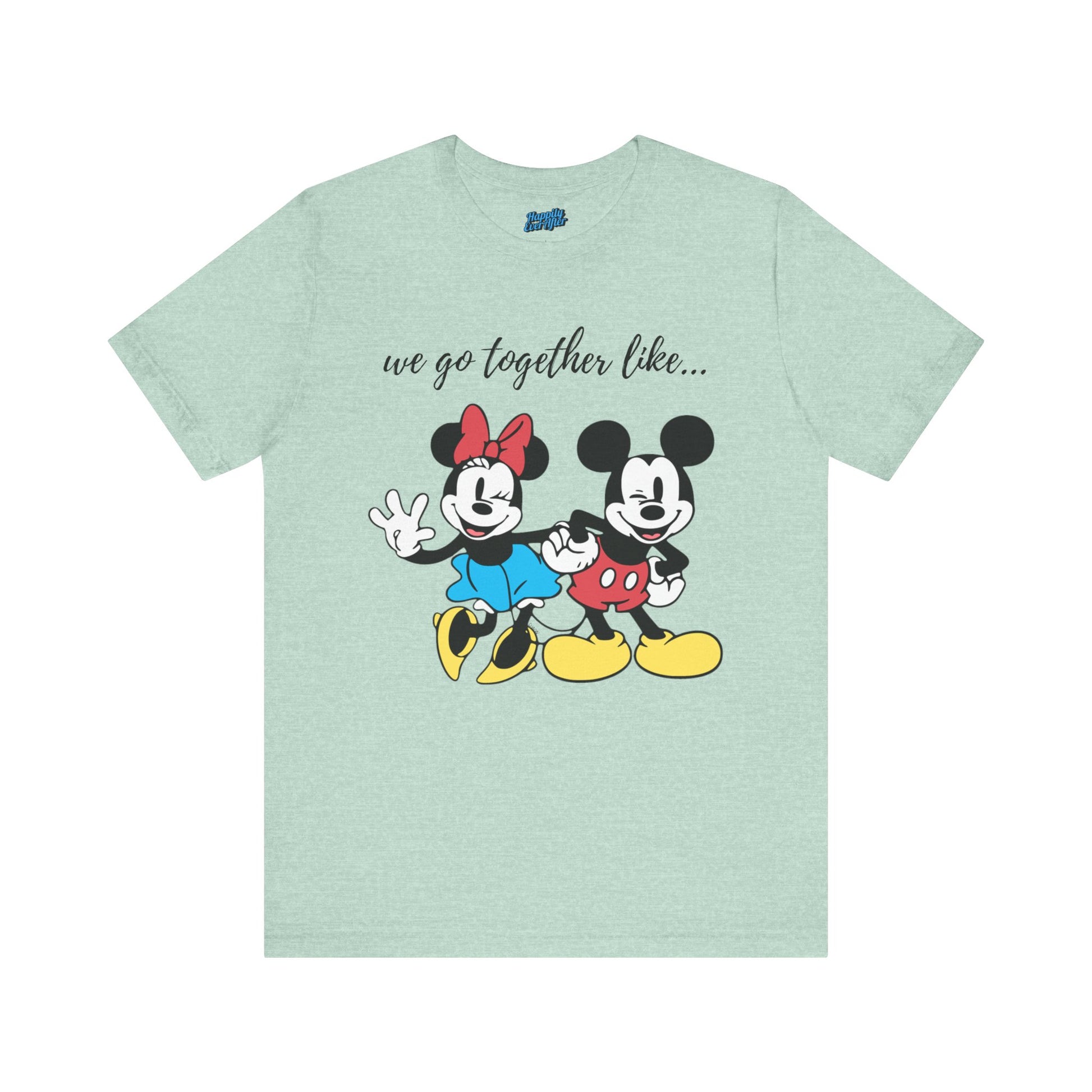 A Tee featuring a design that reads 'We Go Together Like,' perfect for matching with your special loved one. This Tee exudes a cute and playful vibe, ideal for couples and Disney fans. Perfect for Valentine's Day, anniversaries, and everyday wear.