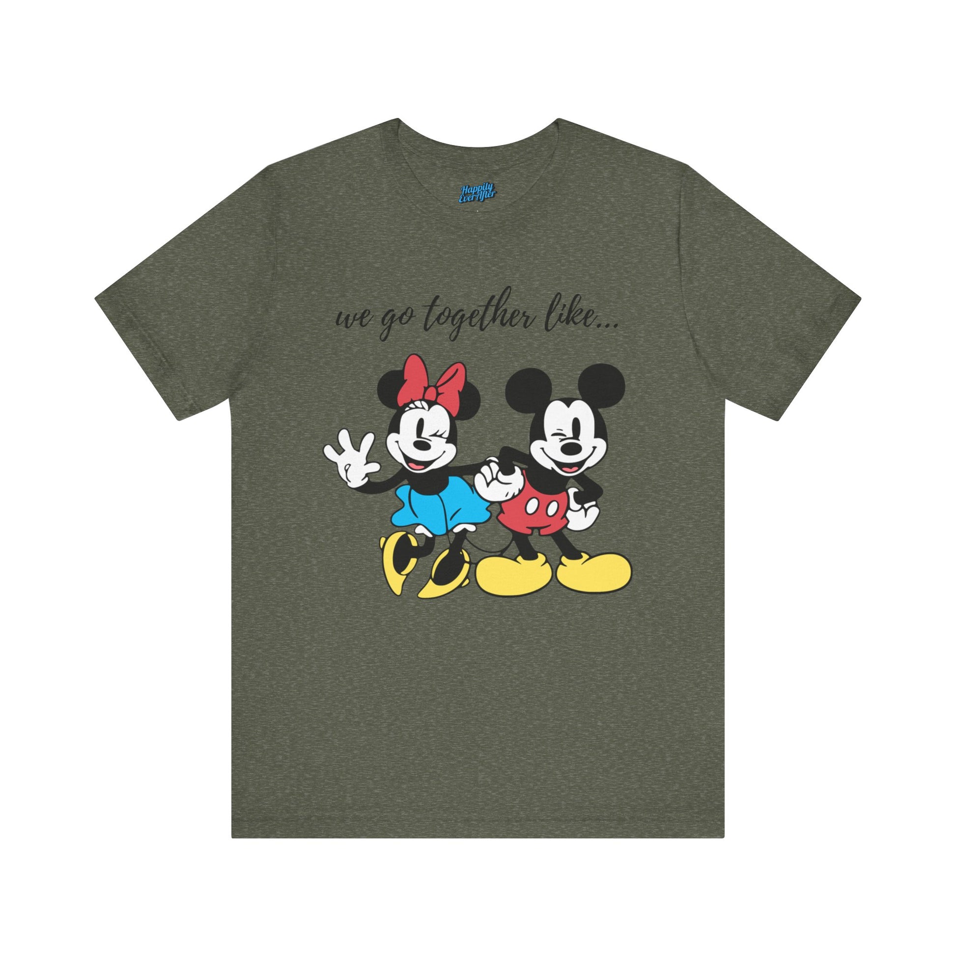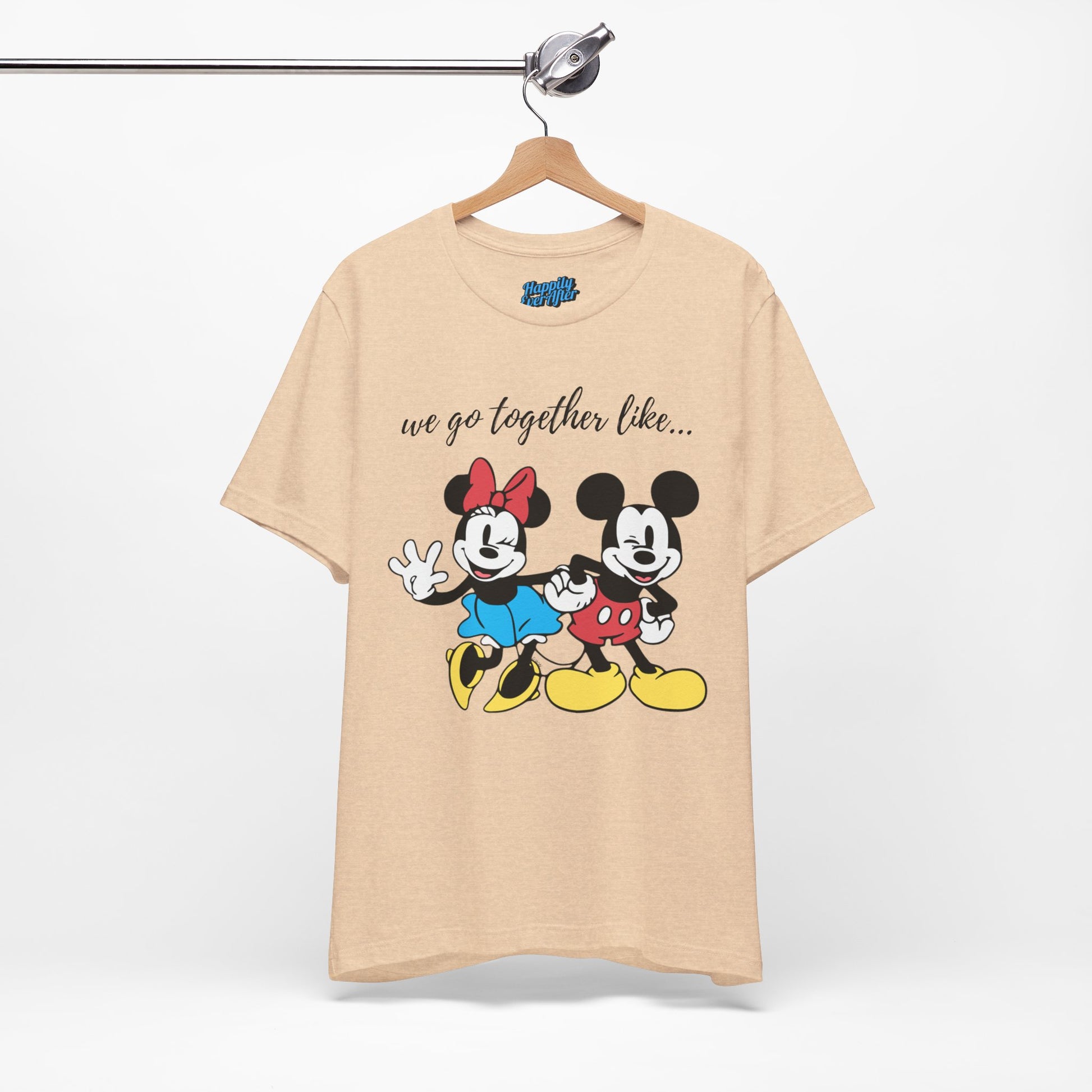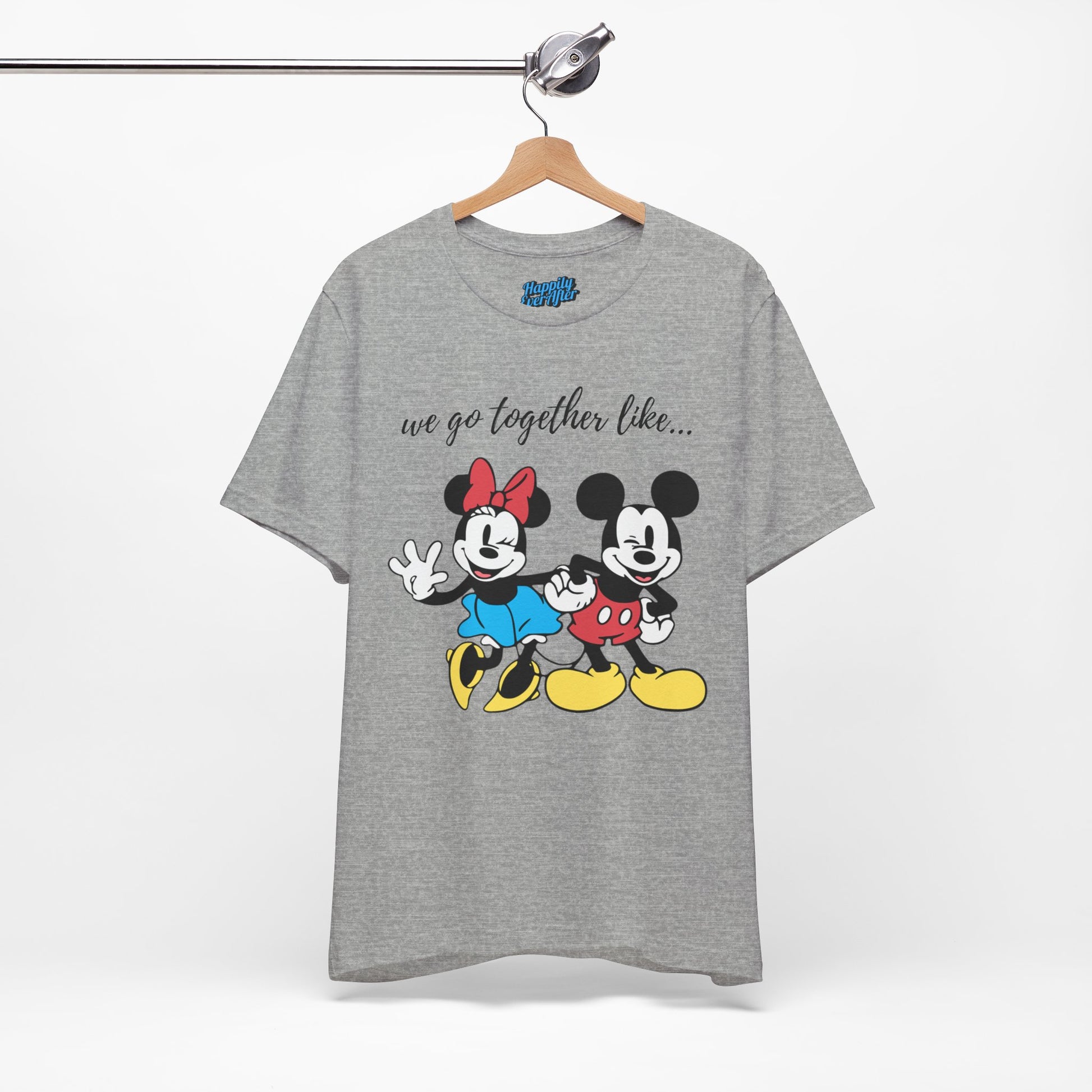 A Tee featuring a design that reads 'We Go Together Like,' perfect for matching with your special loved one. This Tee exudes a cute and playful vibe, ideal for couples and Disney fans. Perfect for Valentine's Day, anniversaries, and everyday wear.
